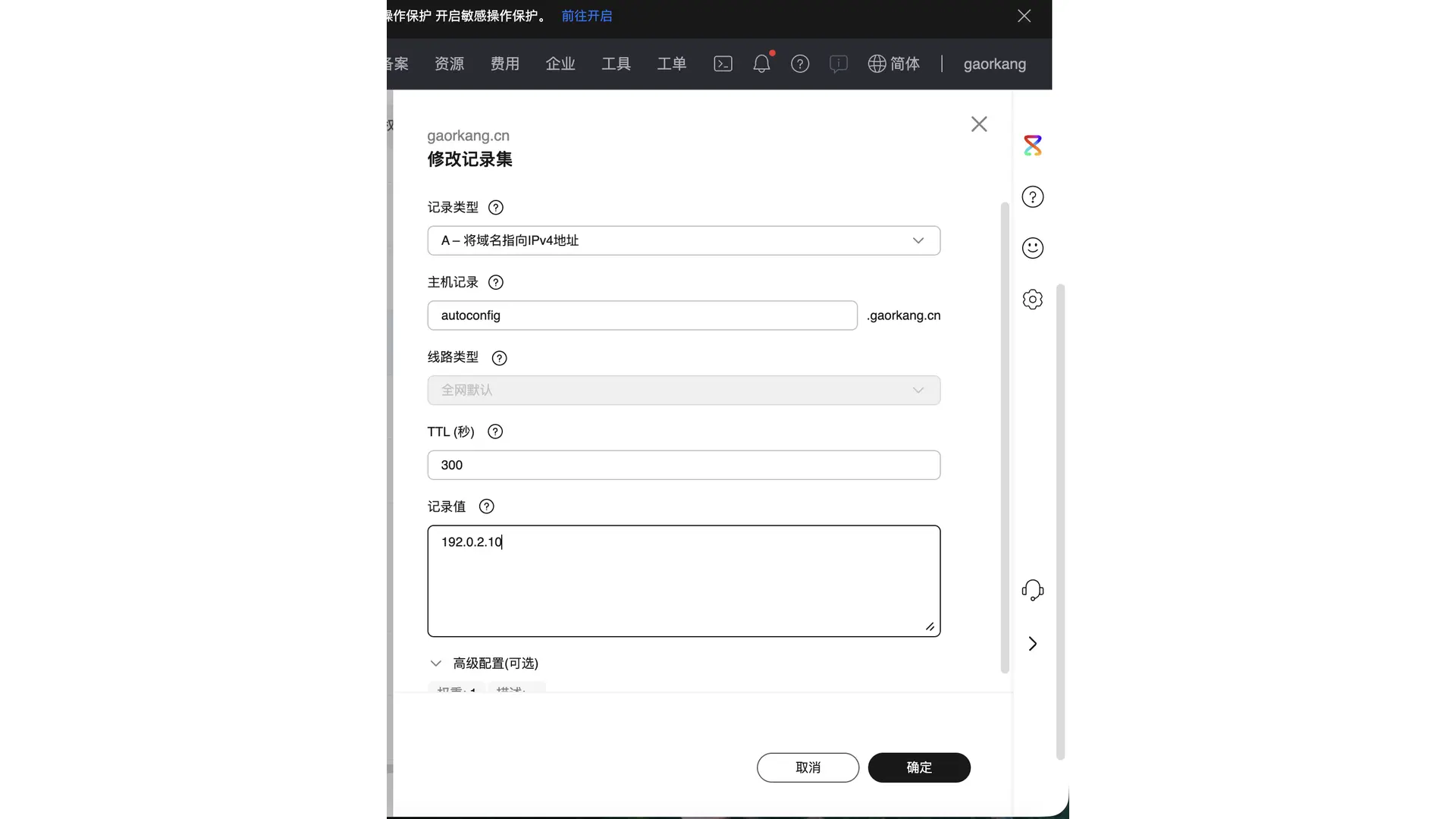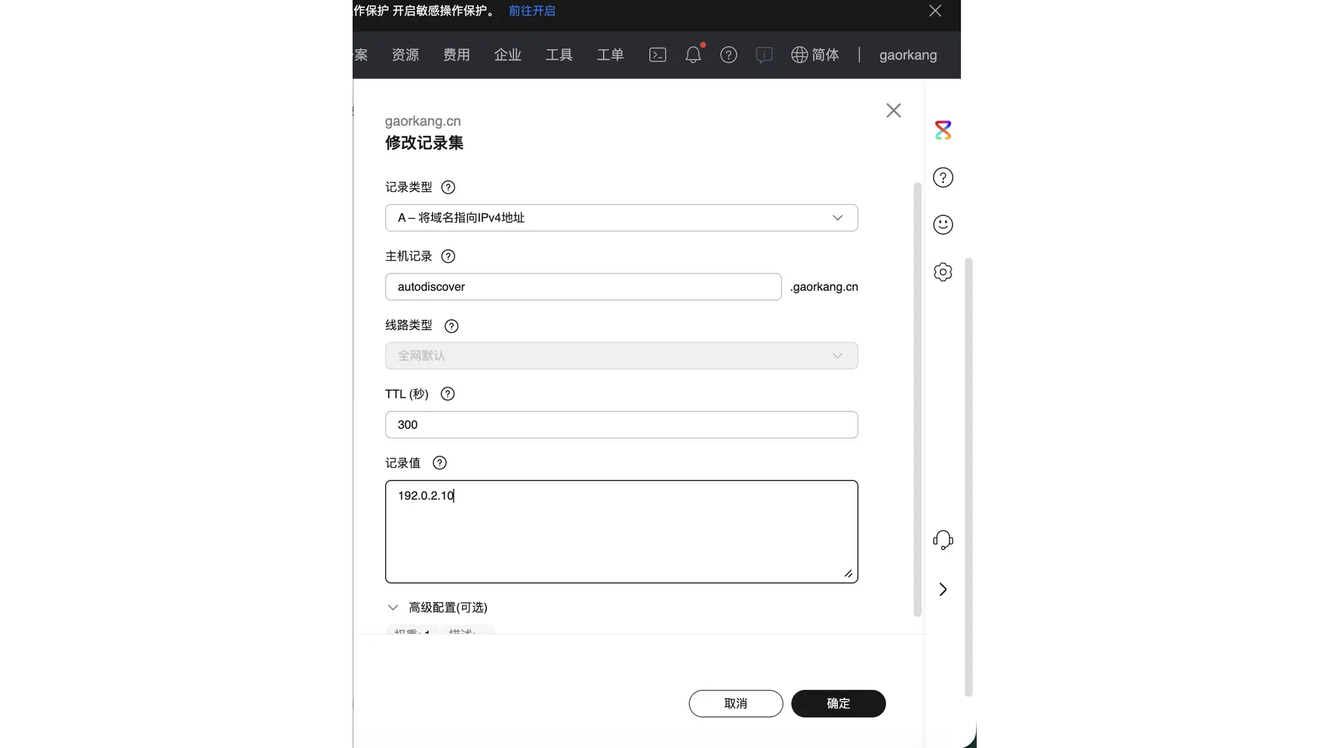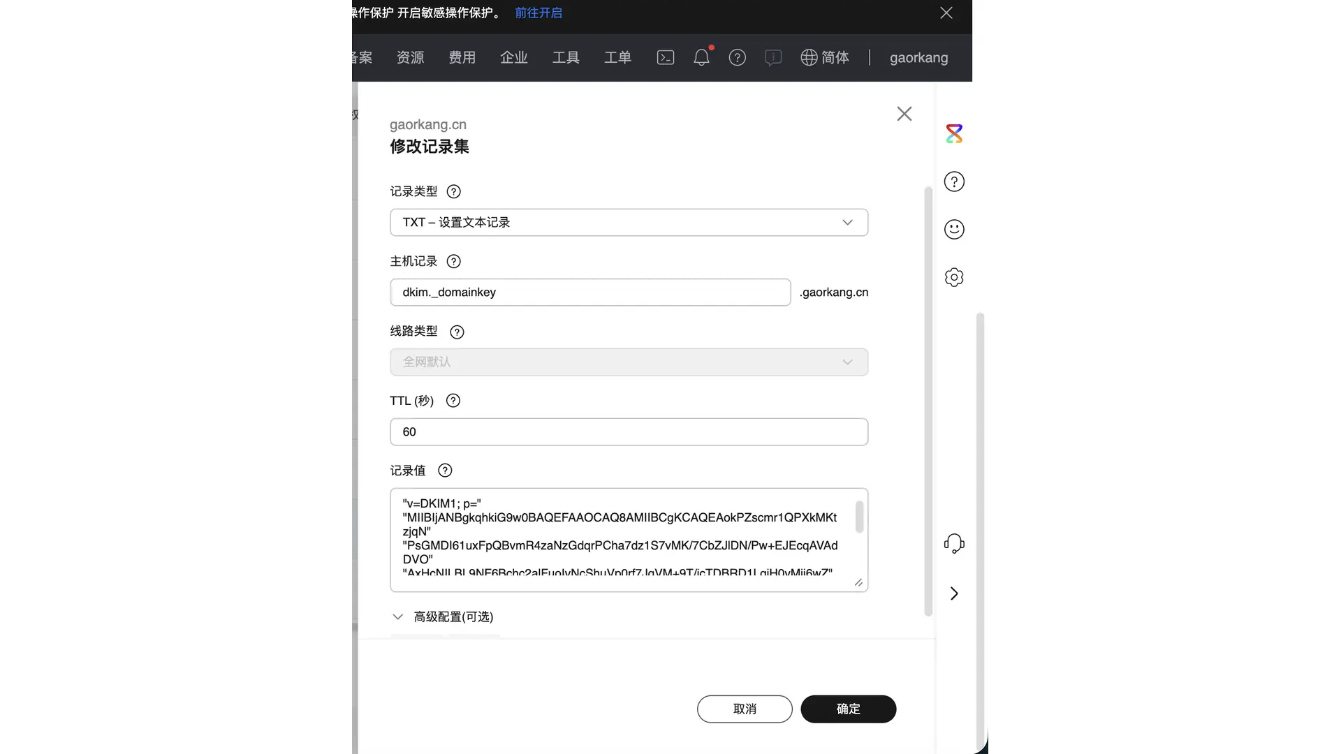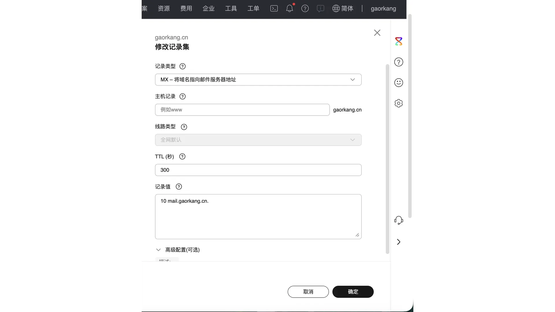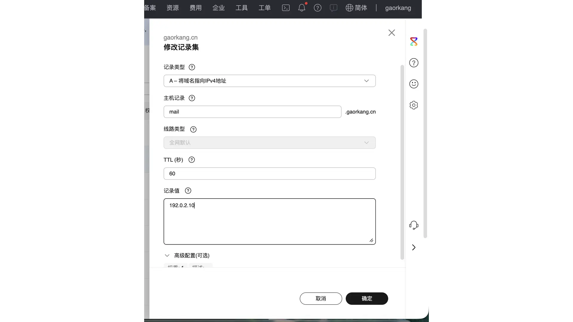 域名:作者下文将使用自己的博客域名(mail.gaorkang.cn)来完成自定义域名的部署,域名解析托管在华为云。