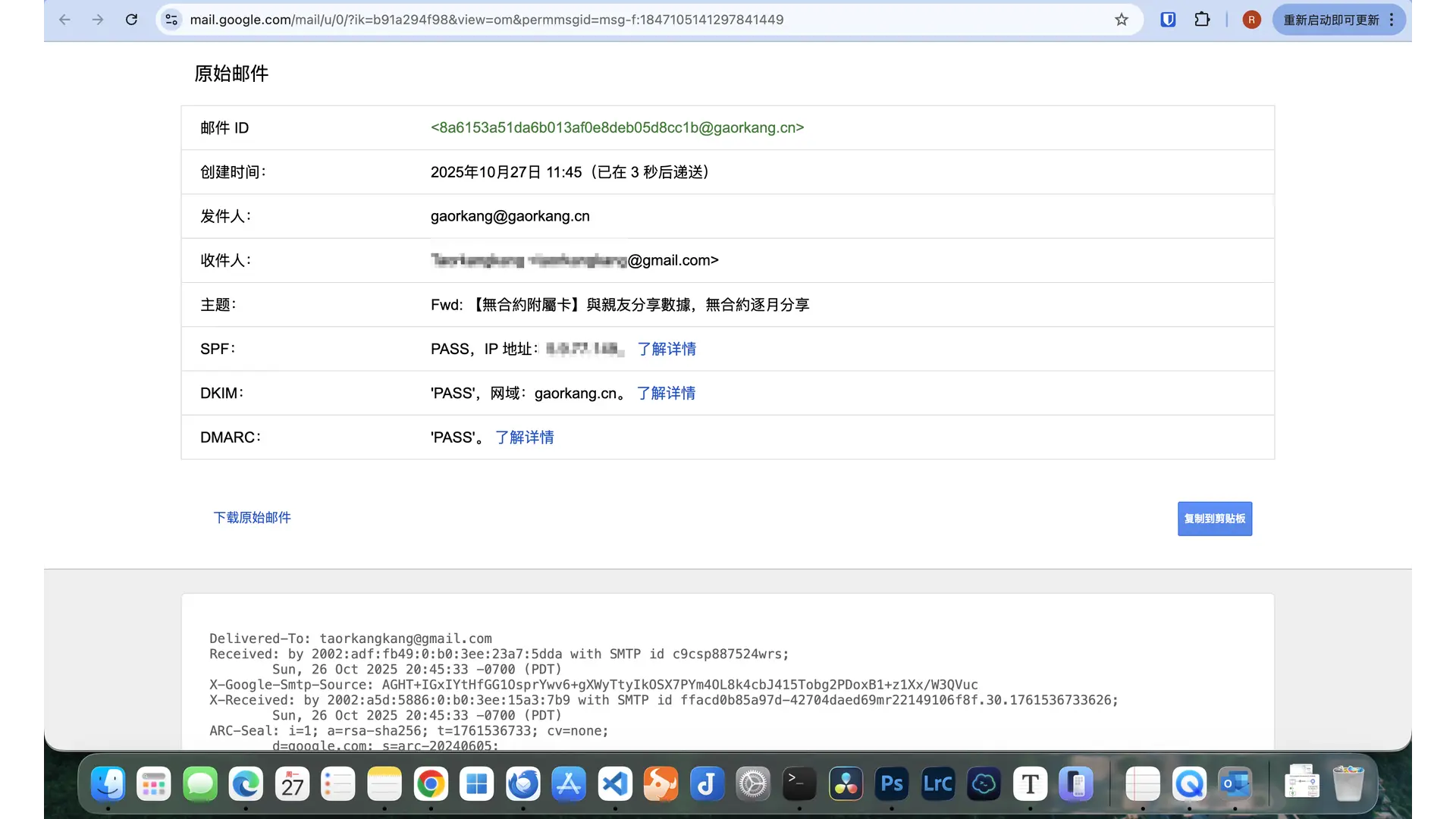 Gmail审核策略还是相对来说比较宽松的,DNS 配置正确基本不会退信。