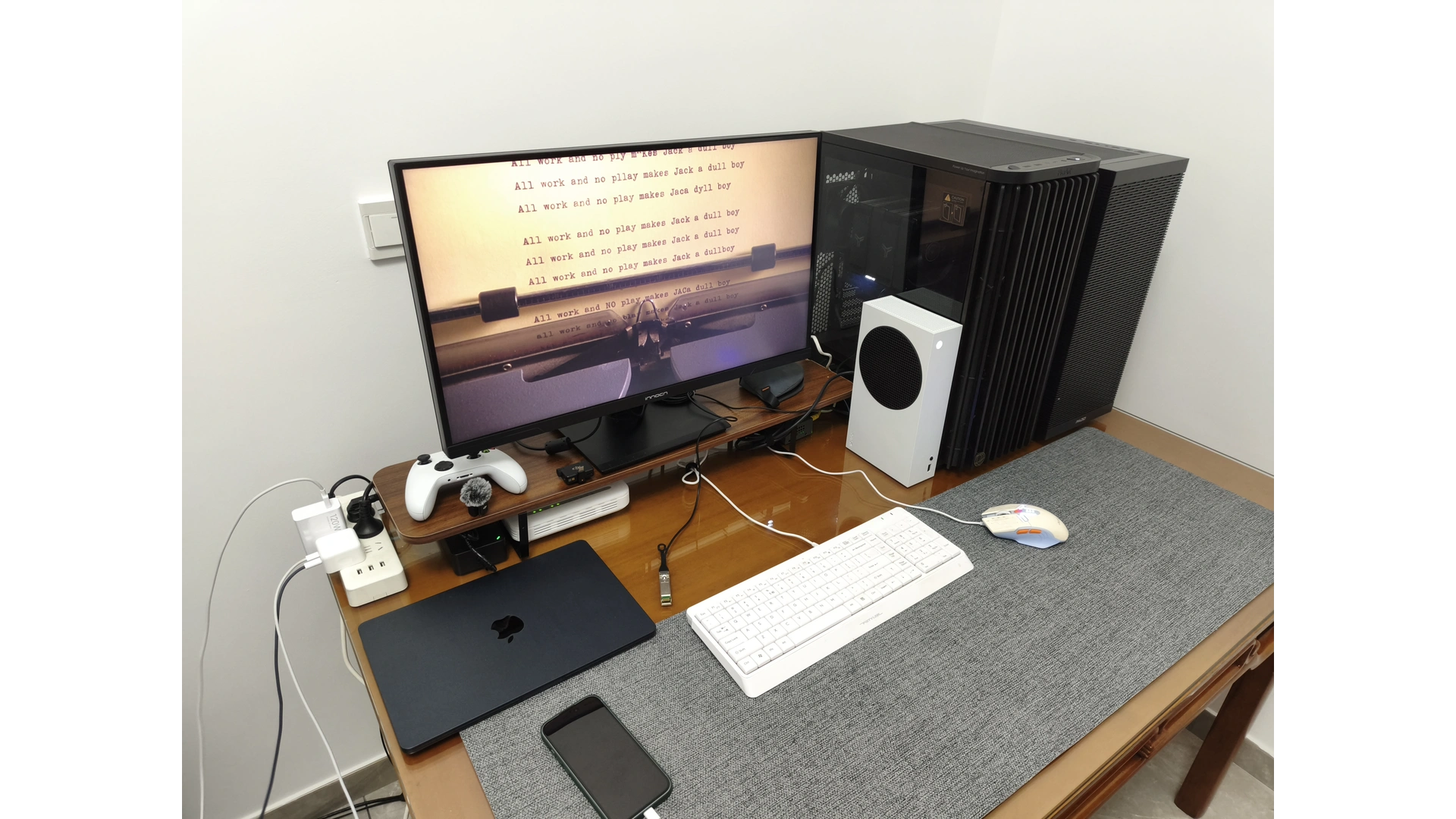 B550M 主板带多个 PCIe 接口的真找不到几个,二手的只有华硕的 ProArt B550M ATX 大板能满足我的需求(价格 500 元左右),闲鱼也有全新的永擎 B550D4U-2T 的工作站/服务器主板,价格在 1100 左右,但是这个主板只有一个 PCIe x16 和一个 PCIe x8 的接口,满足不了我的需求,外加带核显的 R5-5500GT 现在已经涨价到 900 元左右了,老的 Vega 架构核显不支持 AV1 格式解码,性价比太低。期间曾买了一套技嘉 B550 小雕 + R5 4500 套装,收货没敢拆就退了。