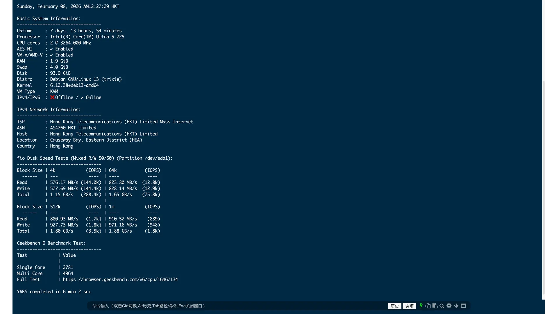 CPU 使用 U5 225 CPU,虽说 U5 225 处理器核显 Xe 核心被阉割成两个,但是解码单元都一样,没有做任何阉割,Geekbench 6 单核约 2900 分,单核约等于 C6230R 的三倍,做 NAS 绰绰有余了。