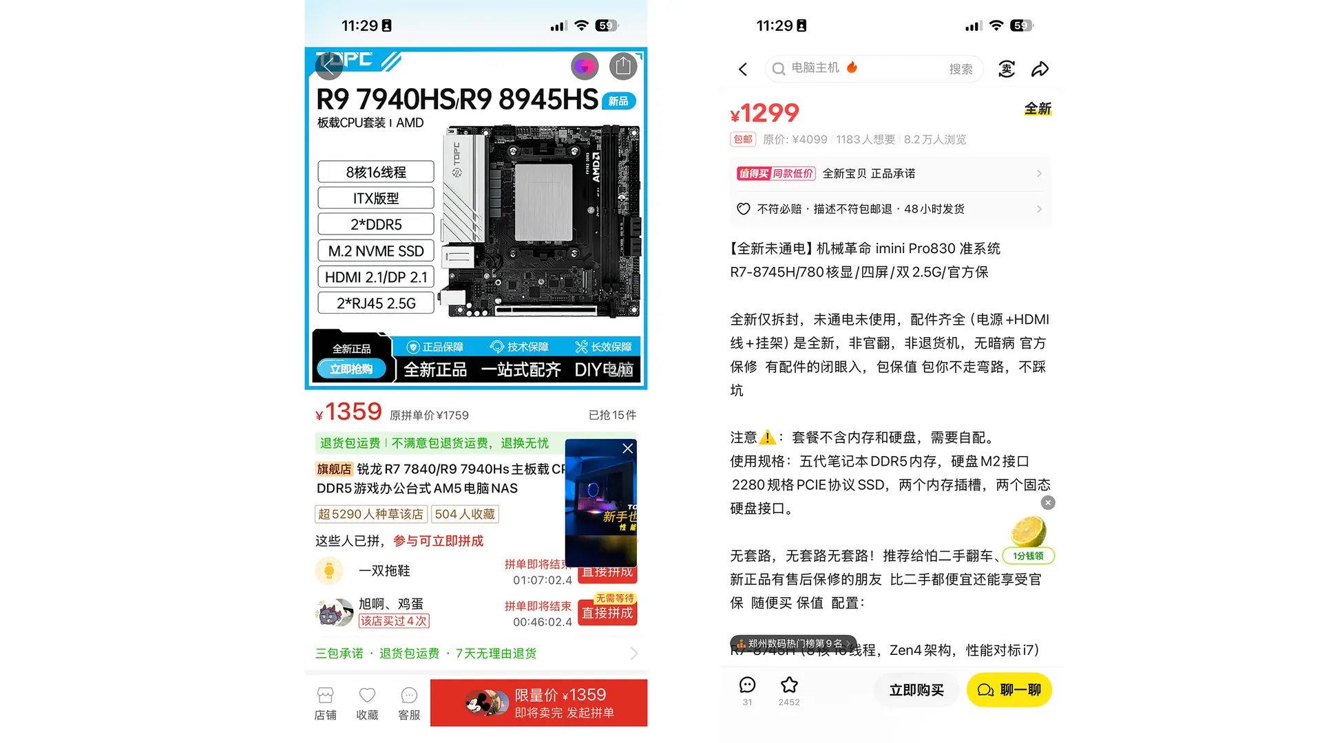内存大涨后,市面上流出一些 Mini PC,比如机械革命的 Mini Pro 830 准系统差不多就 1300 左右,性价比挺高的,但是受限于这种 Mini PC 并没有 PCIe 插槽,用 M.2 插槽转 PCIe 插槽来说也不现实,就不在考虑范围内了。市场还有一些尔英的 MODT 方案,7945HS 的准系统也就 1500 上下,比单买一颗 8700G 划算多,但是这种移动平台主板,基本也都只有一个 PCIe 插槽,购买 PCIe 拆分卡也是不小的一笔支出,最后还是不考虑了。
