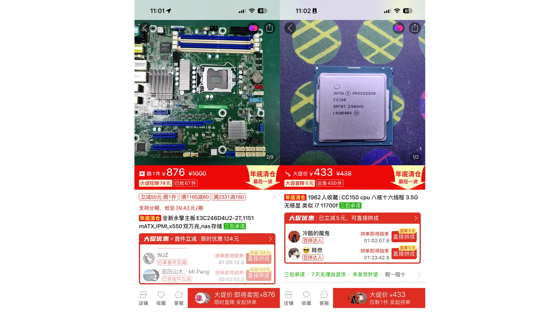 因为硬盘使用的是 SAS 硬盘,加上手里闲置的一块三星 PM1725B 企业 NVMe 硬盘是 PCIe HHHL 接口的,这就至少占用两个 PCIe 接口,同时若选择没有核显的 CPU 的话,还要预留一个 PCIe 插槽来插入一张显卡,还要预留一个 PCIe 插槽为后续升级 SFP+ 万兆光模块做准备,这就需要主板至少有四个 PCIe 插槽,这一般的家用主板根本不满足,于是开始逛遍小黄鱼、拼多多、淘宝来找合适的硬件,拼凑了下面几个方案: