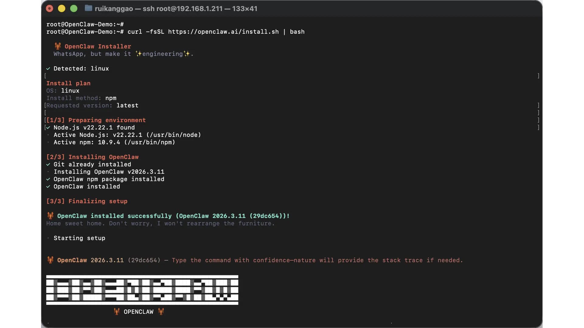 curl -fsSL https://openclaw.ai/install.sh | bash