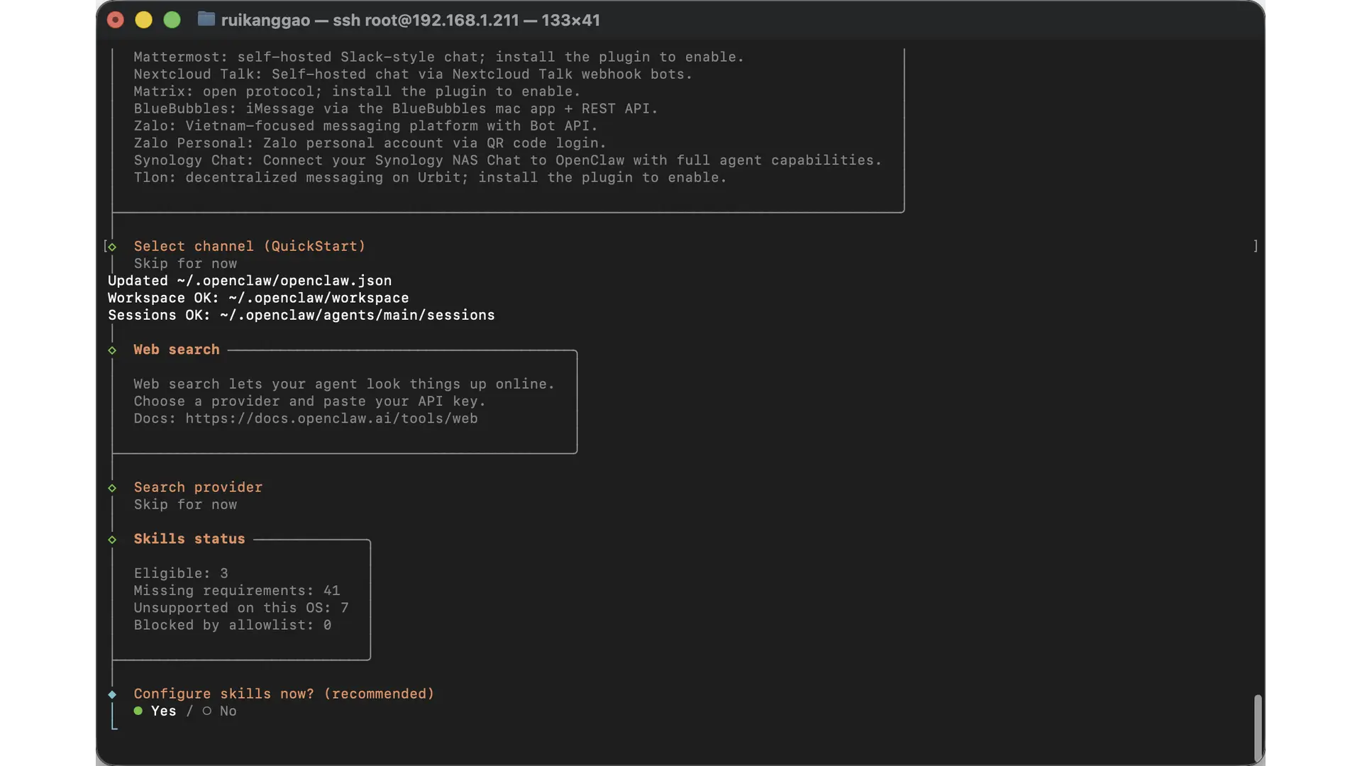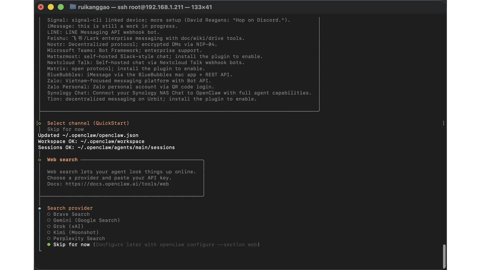 Search provider 也可以先跳过,后续单独配置。
