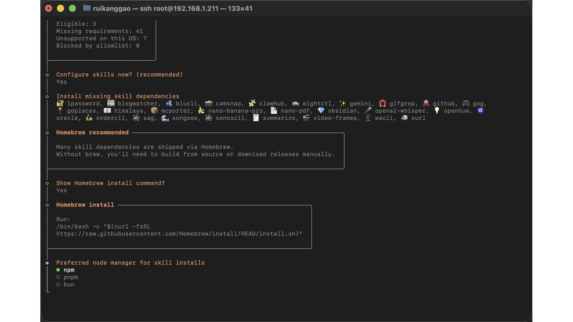 Homebrew 和 npm 要安装。