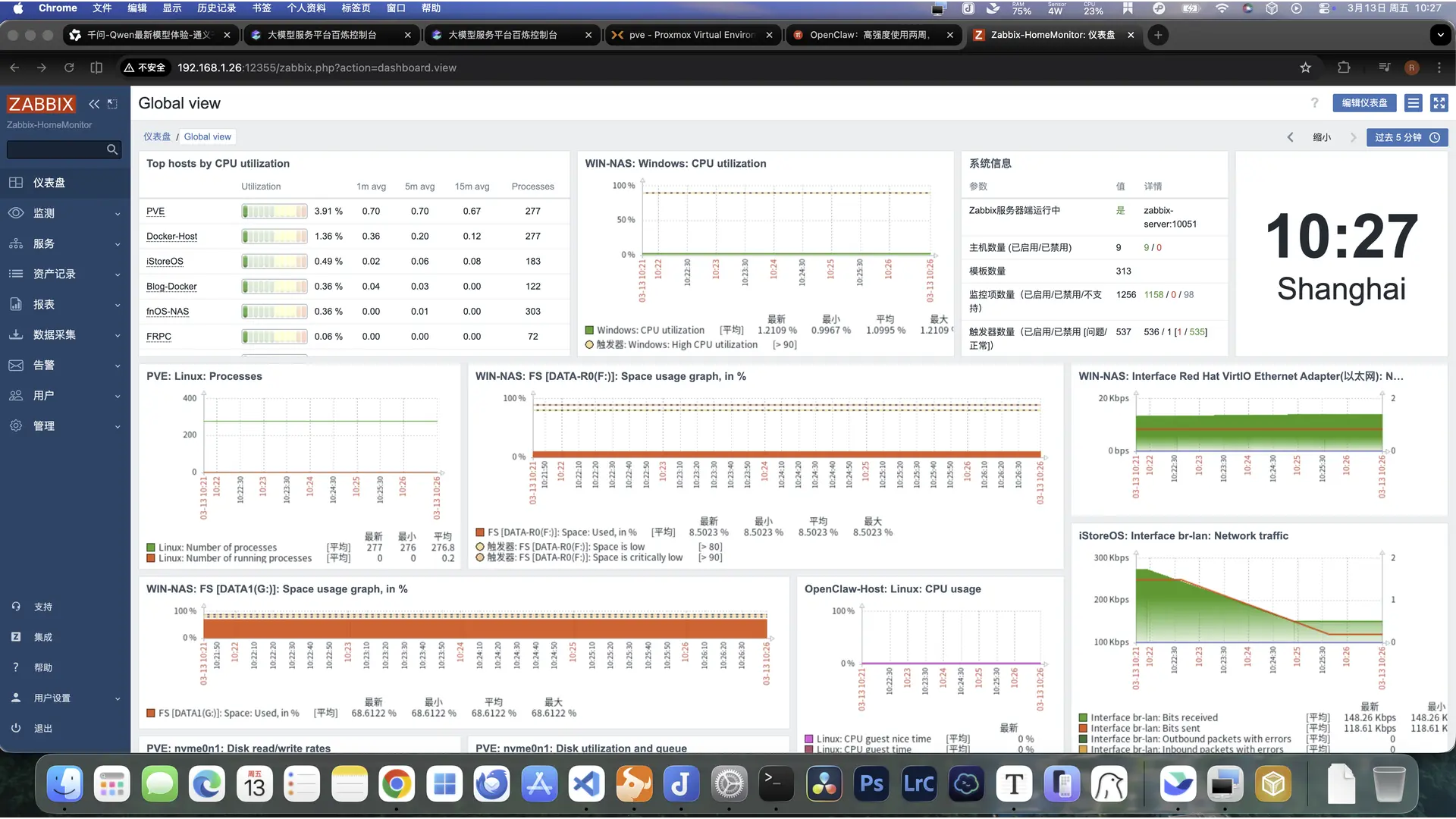 龙虾可以快速地部署一个 Docker 项目,以 Zabbix 监控为例,要是自己部署,需要去看 Zabbix 的官方文档,编辑 Docker Compose 文件,最后在 shell 里输入命令,拉取容器。