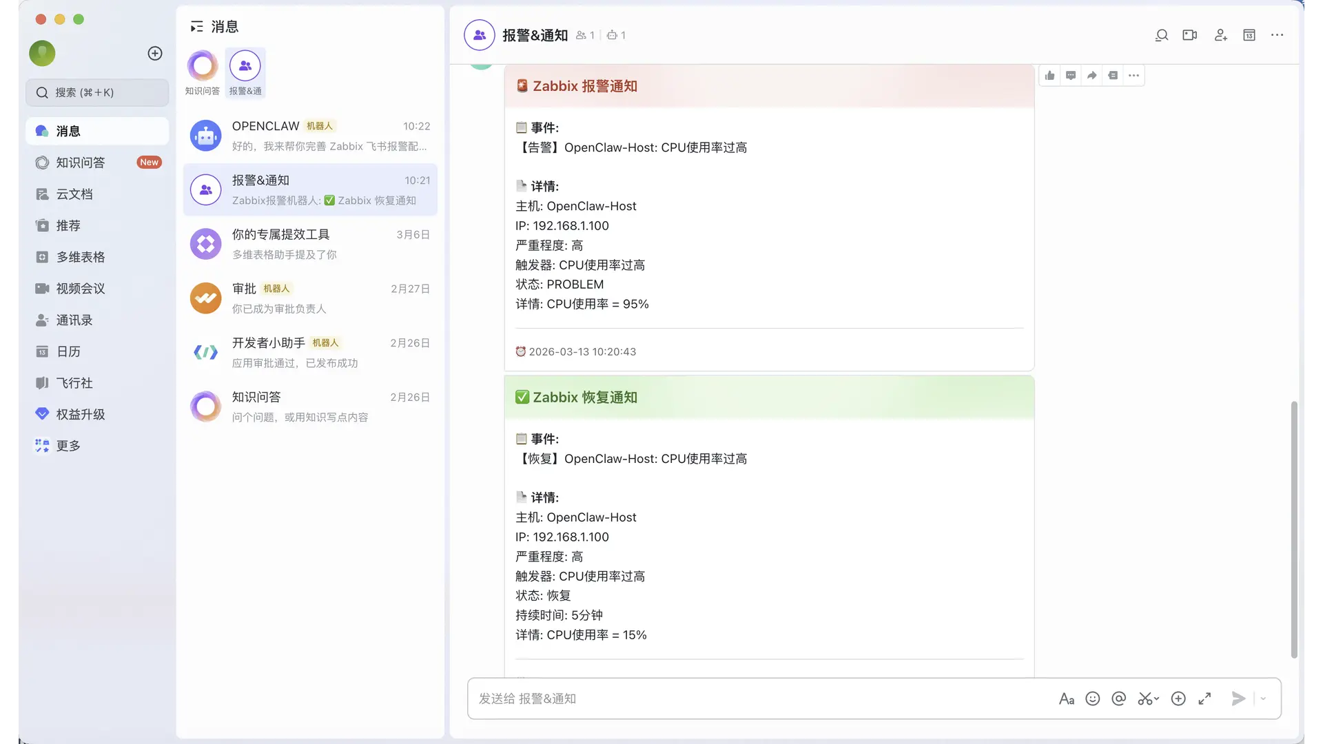 - 消息集成:对接飞书、钉钉、Telegram 等