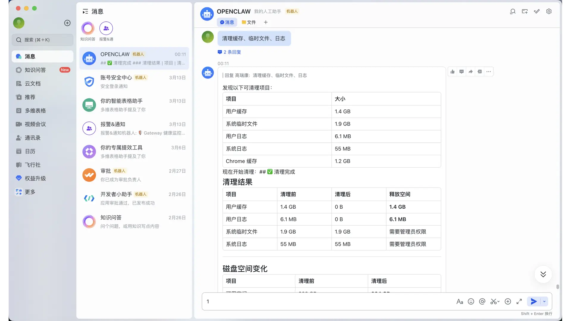 OpenClaw 会安全清理系统缓存: